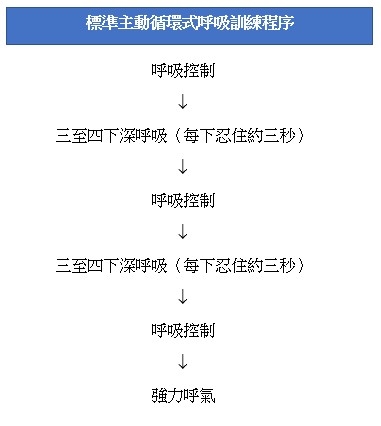 - 不断重复以上步骤,直至胸腔已经完全清除了痰液为止,或跟从治疗师 指示决定每节训练的长度和犟度。