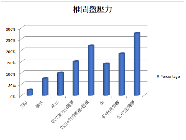 椎间盘的压力越高,它导致的潜在风险越高。病人应该避免那些对椎间盘构成重压的位置