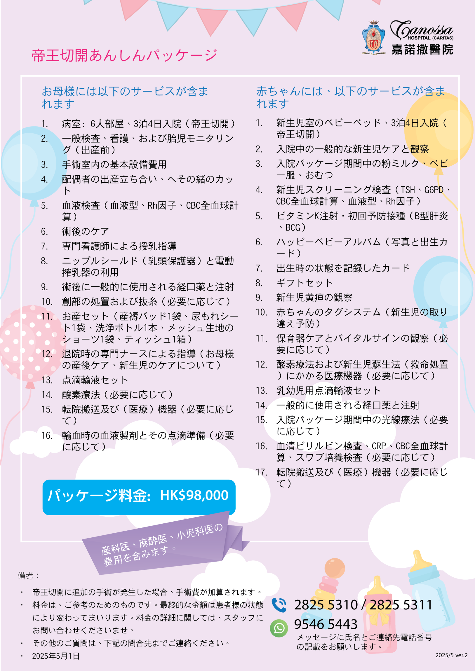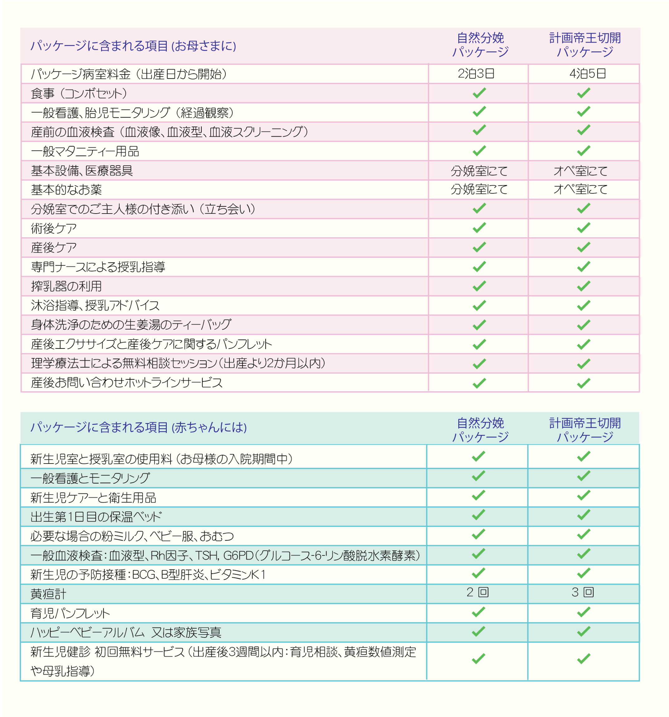 計画帝王切開パッケージ & 自然分娩パッケージ