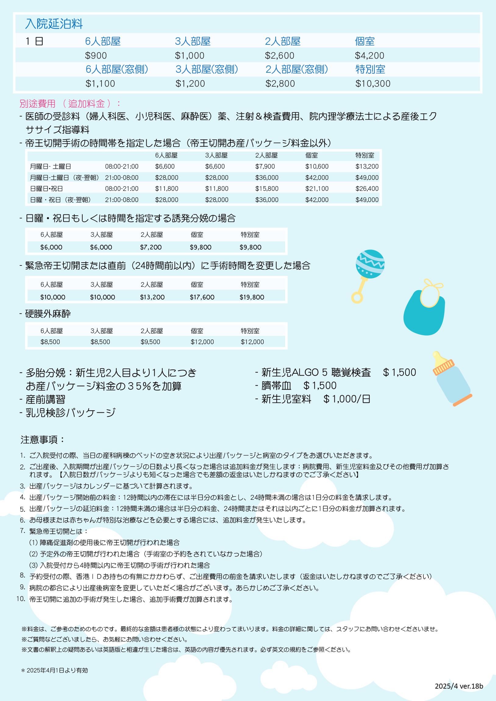 計画帝王切開パッケージ & 自然分娩パッケージ