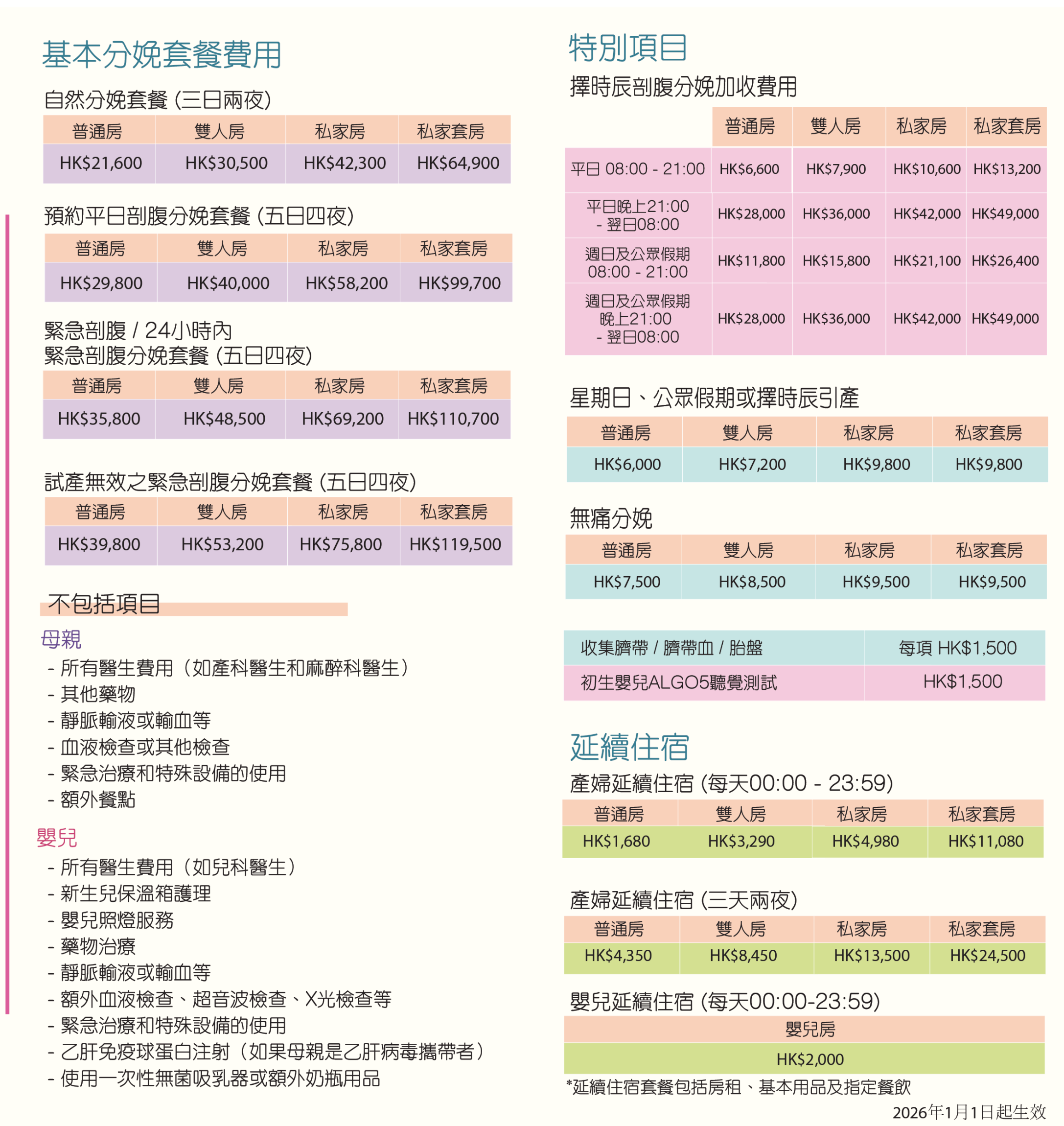 分娩套餐收費